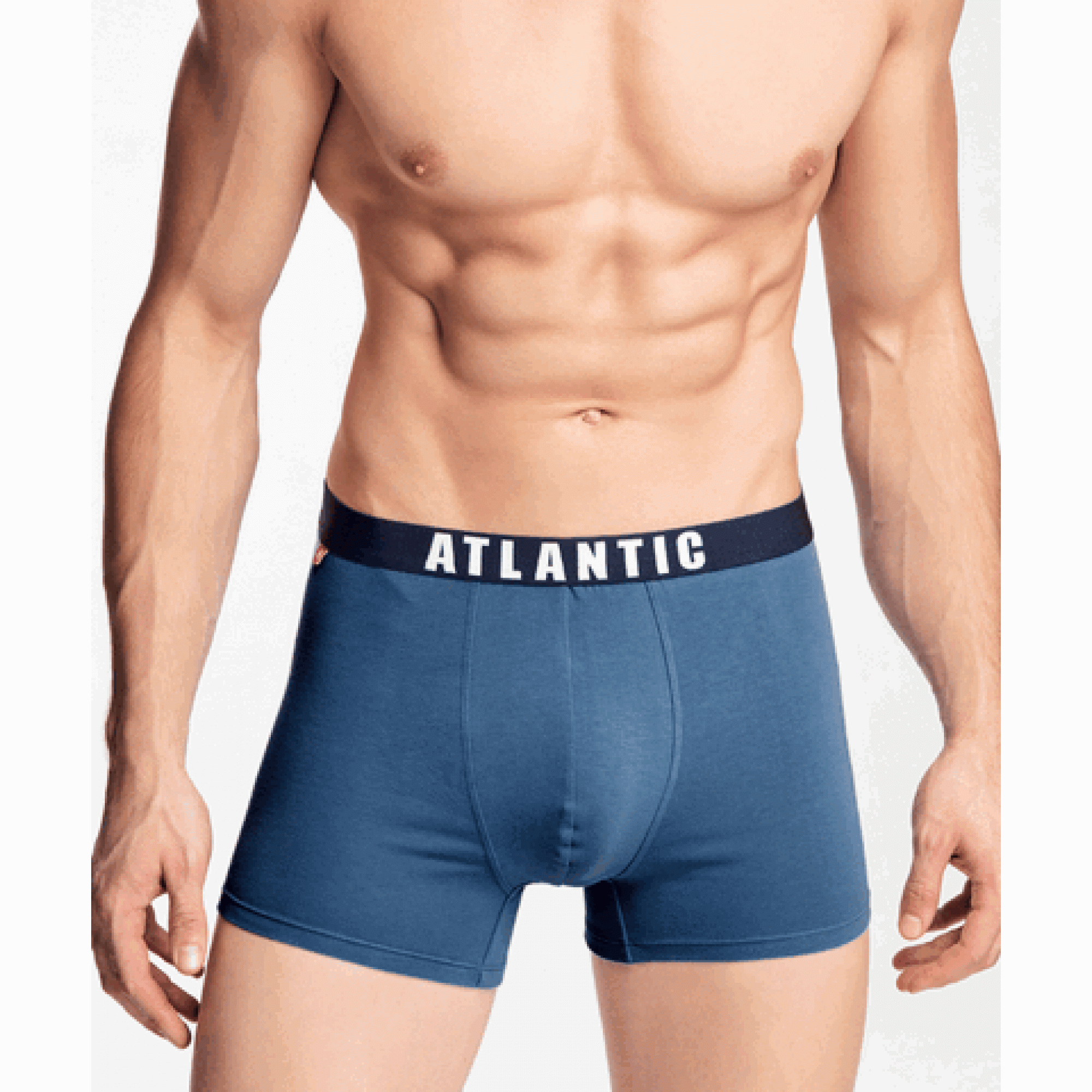 Однотонные мужские шорты Atlantic. Шорты спортивного кроя с профилированным гульфиком, идеально сидят на фигуре. Подходят для любого типа фигуры. Контрастная внешняя резинка с логотипом. Трусы изготовлены из мягкого хлопка с добавлением приятного на ощупь эластана. Максимальный комфорт использования.